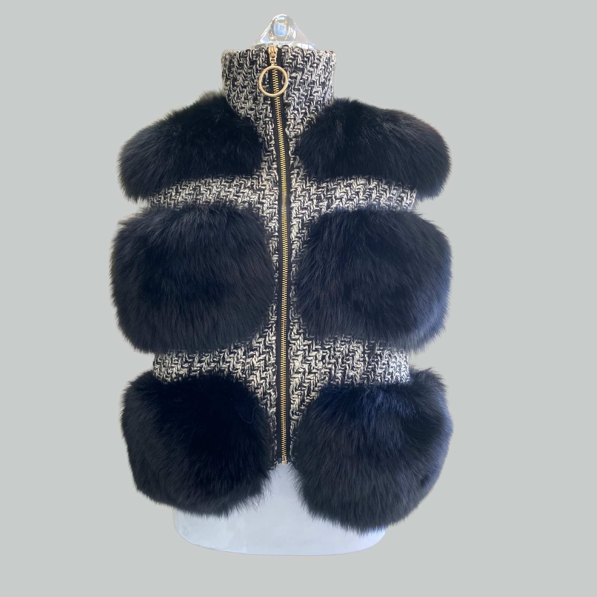 This style combines a classic French tweed and fur detailing.